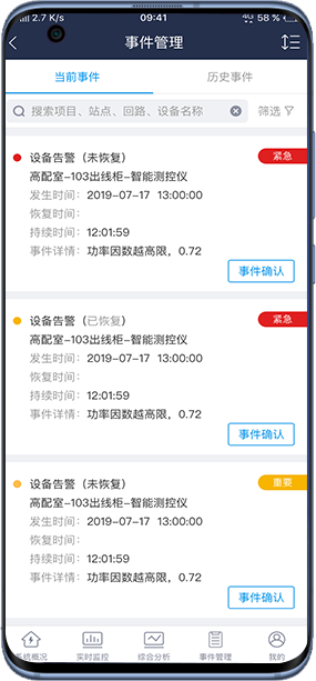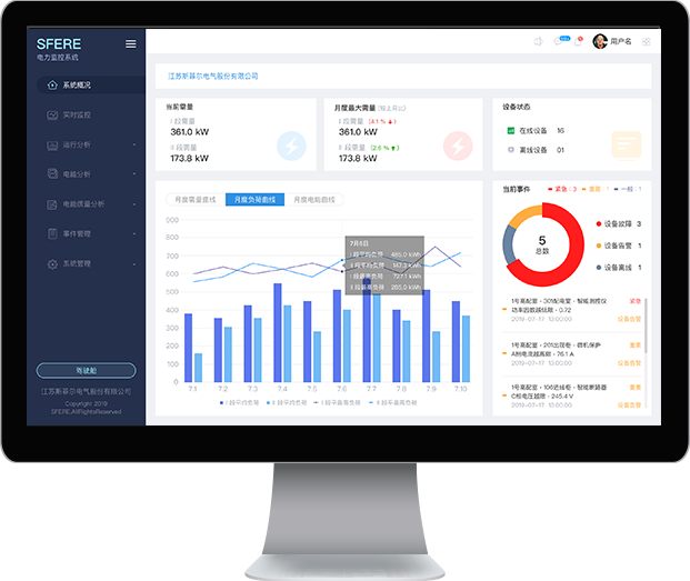 基于物联传感、移动互联、云计算技术及大数据等现代信息技术,系统接入智能电表、综合保护装置、直流屏、变压器温控仪表、环境监测设备、水浸传感器、烟雾传感器、视频监控等各类终端设备,帮助用户实时掌握配电系统运行状态,实时获取预警、报警等各类事件,实现变电所、开闭所、配电房等重点区域的无人值守,提高安全监管水平。