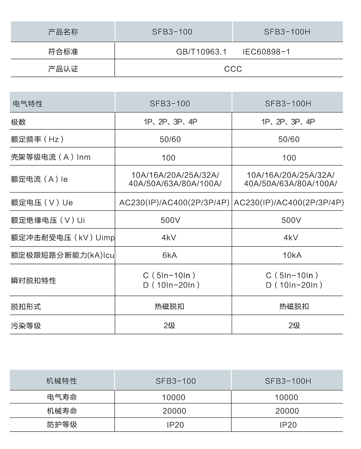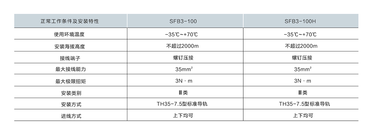 SFB3-100系列高分断小型断路器适用于交流50Hz或50Hz,额定工作电压400V及以下,额定电流10A-100A的场所,主要用于办公楼、住宅和类似的建筑物的照明、配电线路及设备的过载、短路保护,也可在正常情况下,作为线路不频繁转换之用。