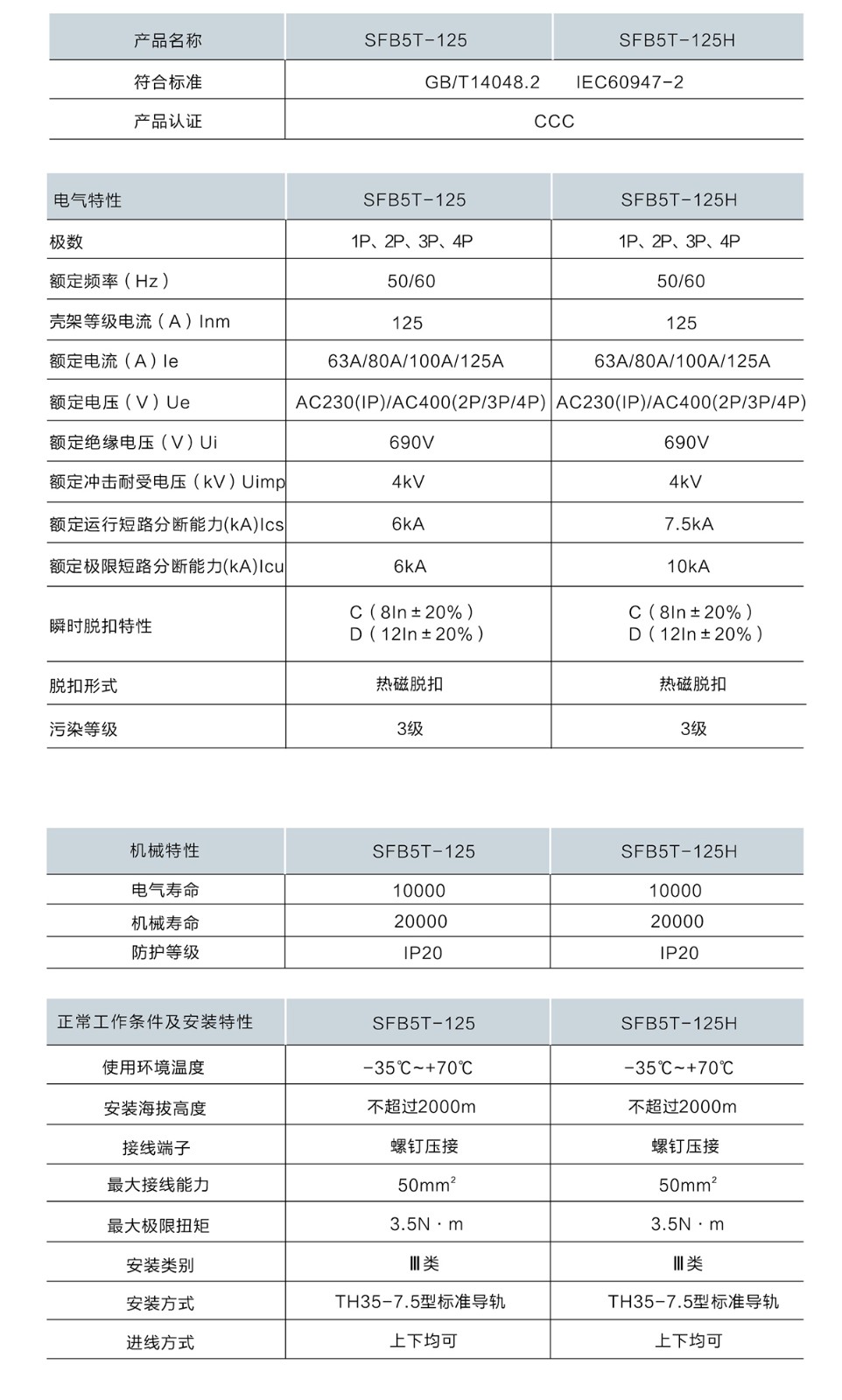 小型断路器SFB5T-125系列