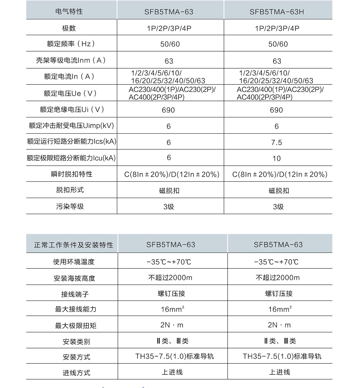 小型断路器SFB5TMA-63系列