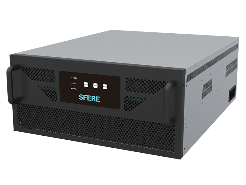 SFR-SVG系列静止无功发生柜以数字信号处理器(DSP)为核心,通过电抗器将自换桥式电路并联在电网上,采用实时数据采集技术和动态跟踪技术检测电网电压、电流信息,通过内部DSP计算后提取出负载电流的无功成分,然后将PWM信号驱动IGBT,根据无功电流大小来控制三电平拓补电路产生满足要求的无功电流,达到无功补偿的目的。