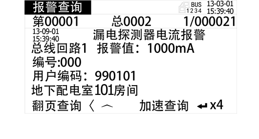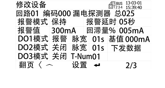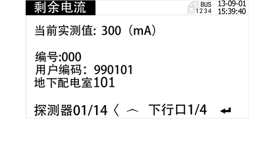 可在设备信息菜单中查询探测器信息:各回路漏电探测器和温度探测器在线数和总数。