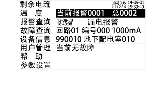 系统支持对剩余电流和温度报警值以及各类回路信息和状态进行远程设定。当回路发生报警时,系统发出声光报警信号,并自动进行详尽顺序的事件记录。