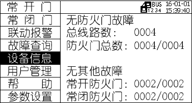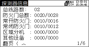 可在设备信息菜单中查询防火门监控模块设备信息:监控器所接各类监控设备的在线数和总数。