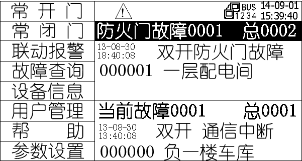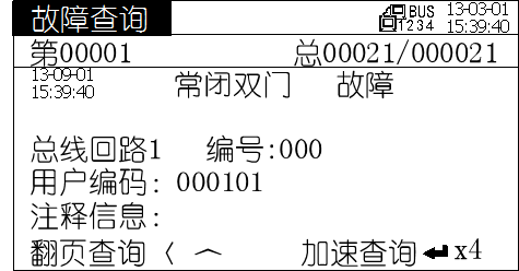 监控器自动记录发生的所监控的防火门故障及监控系统其他故障记录,通过“故障查询”可查询到所有记录。