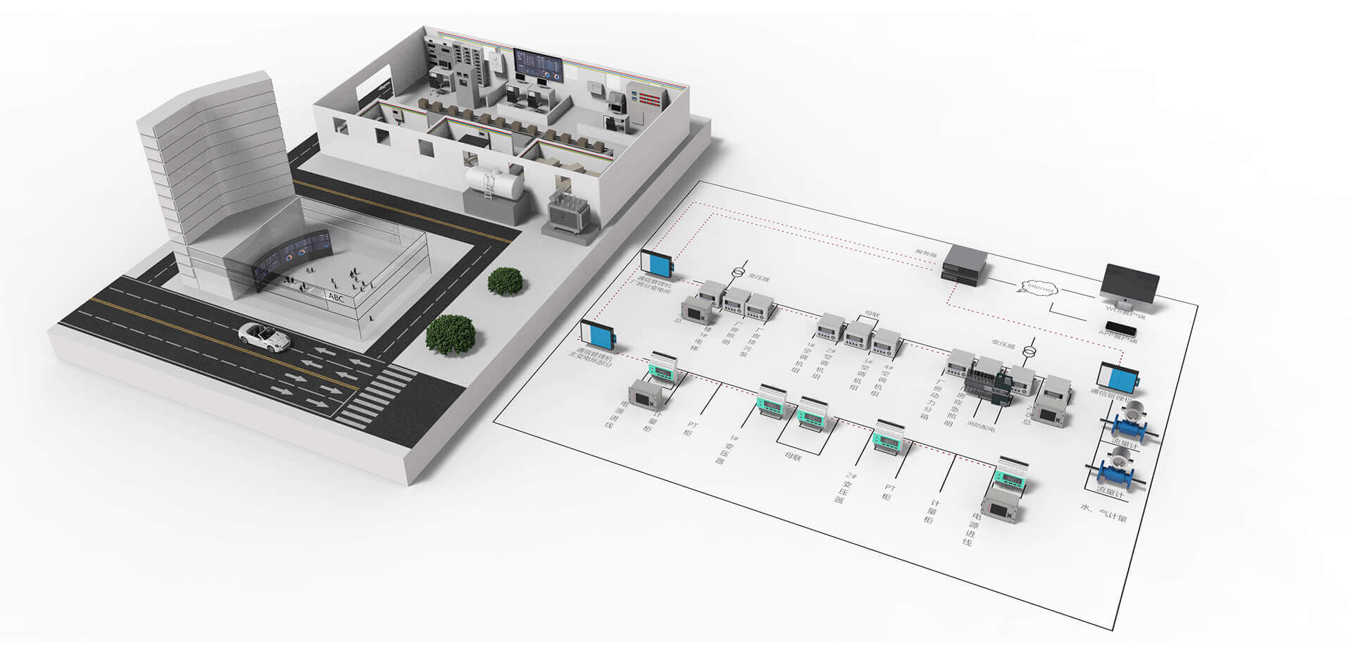 设备和用户可通过Internet连接至我司的工业能源智慧管理平台,用户可在线创建不同项目,项目运行在同一平台上,但是界面和数据通过账号/项目标识区分,提供专用系统体验。或把完整平台安装至自建的监控中心的服务器集群,或公共数据中心租赁的服务器集群。